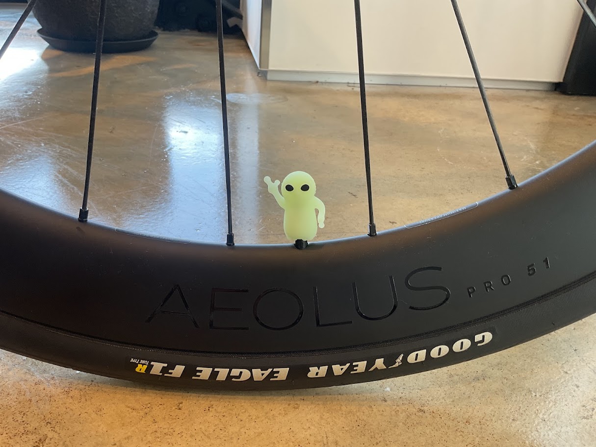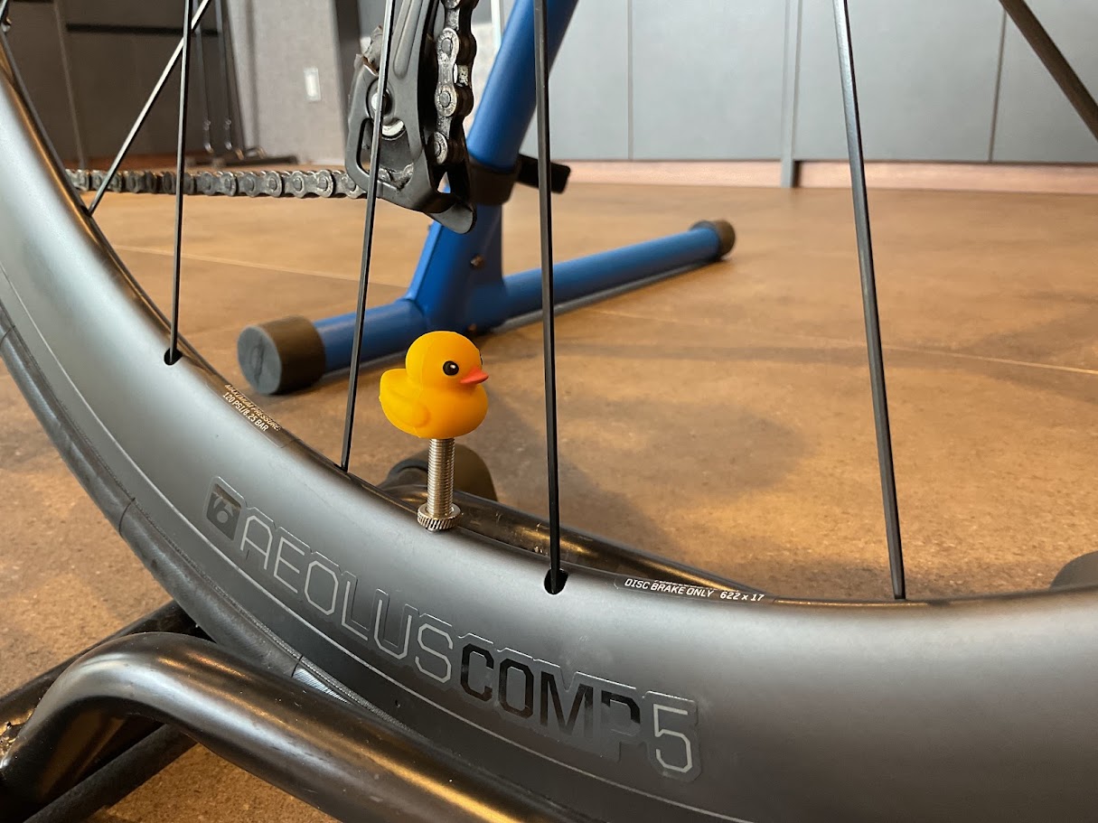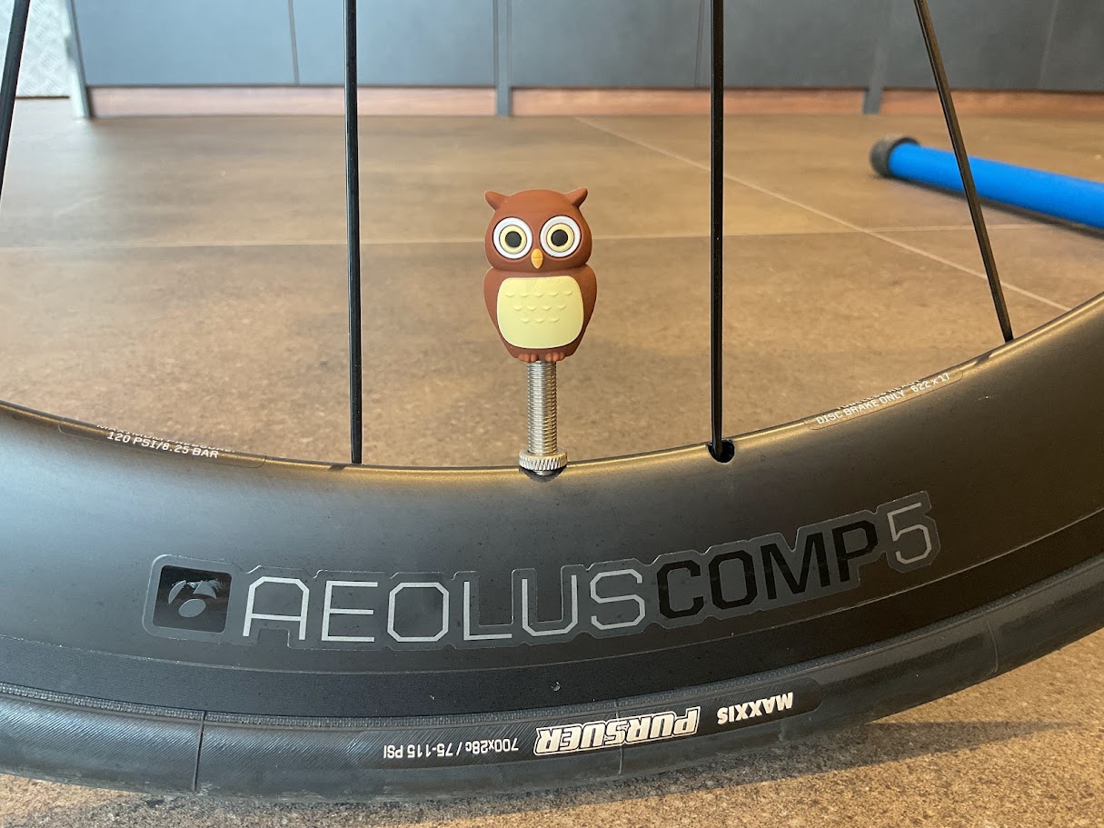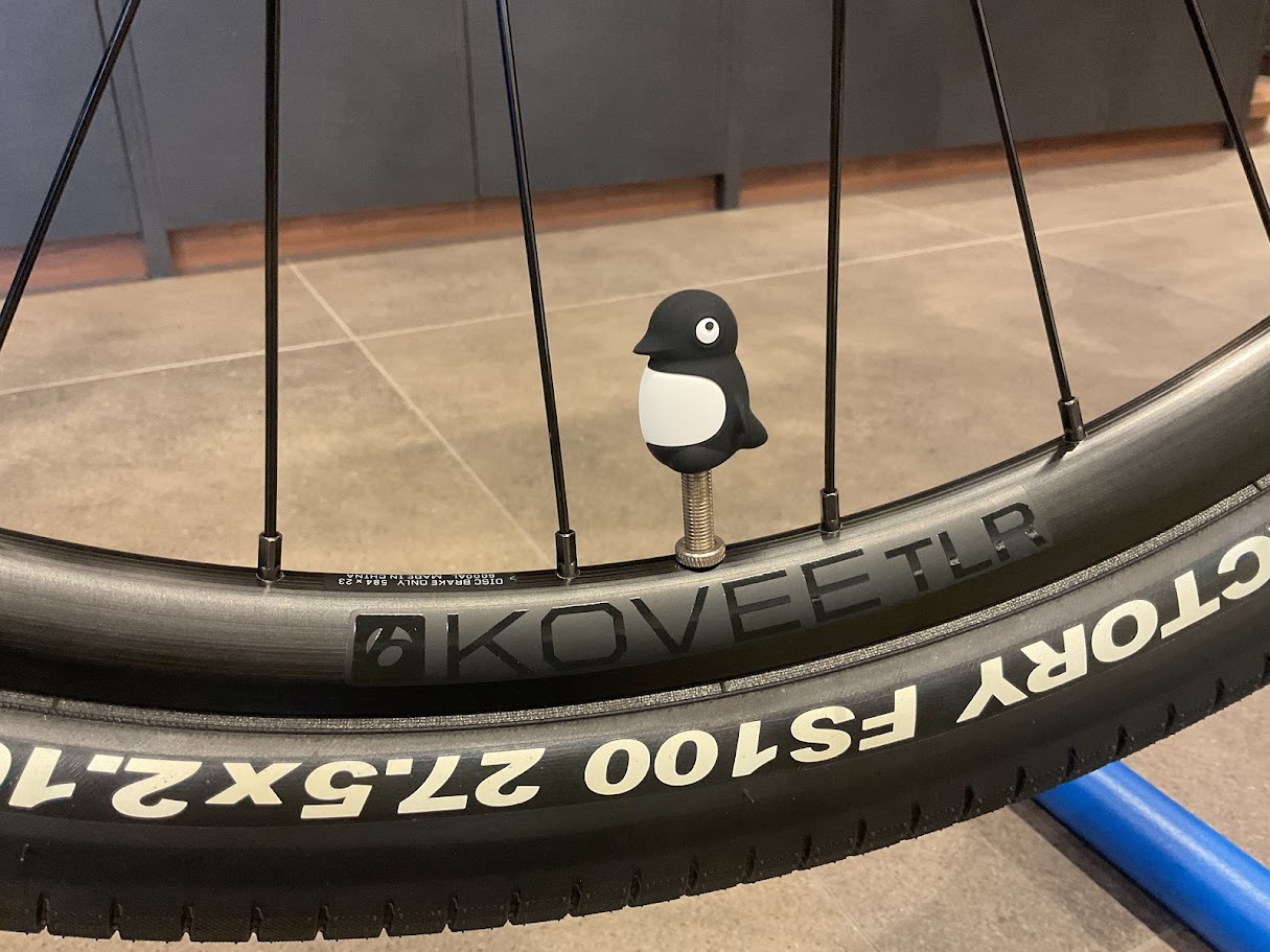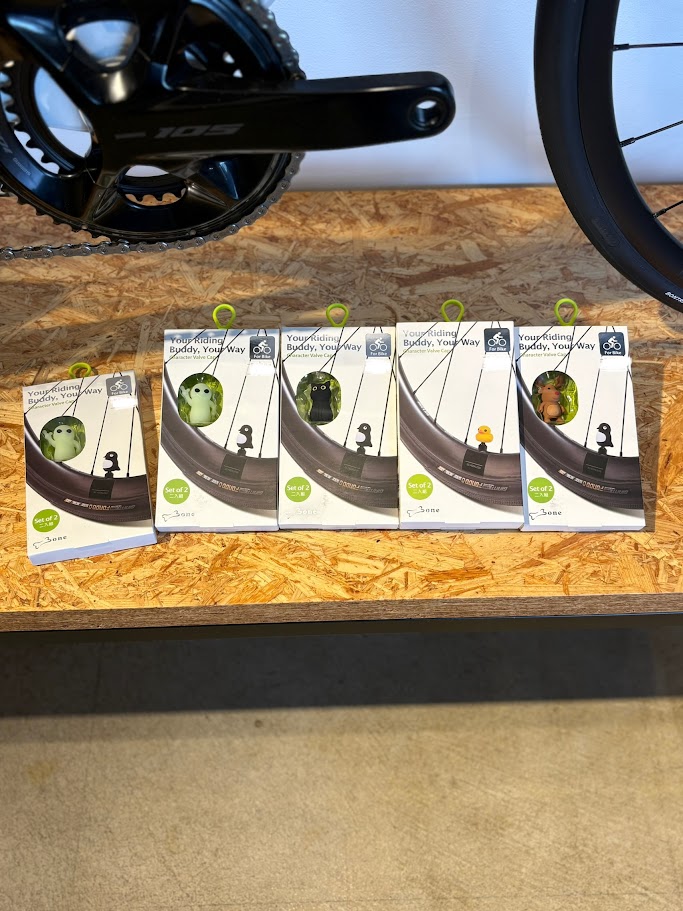 愛車のロードバイクに取り付けてみましたが、エアロなハイエンドホイールにポンと小さなキャラが乗っているだけで、なんとも言えない愛嬌が…。バイクをご紹介するつもりがバルブキャップに目が行くお客様が続出しております(笑)