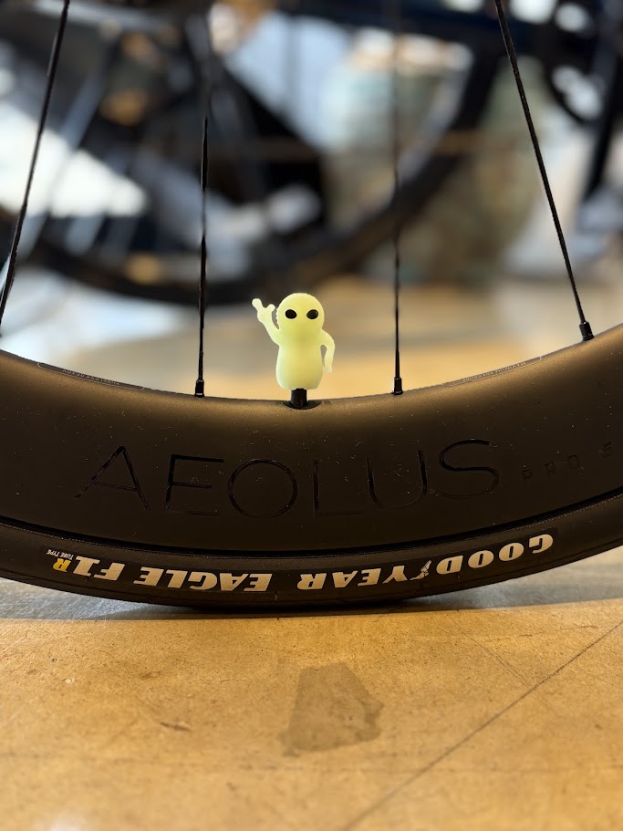 というのは冗談ですが、アンニュイな魅力を放つこちらのエイリアン、、、楽々園ヘビーユーザーの中でひそかにバズっている、自転車にちょっとした“かわいさ”や“ユーモア”を加えてくれるアイテム、Boneのキャラクターバルブキャップを本日はご紹介します。