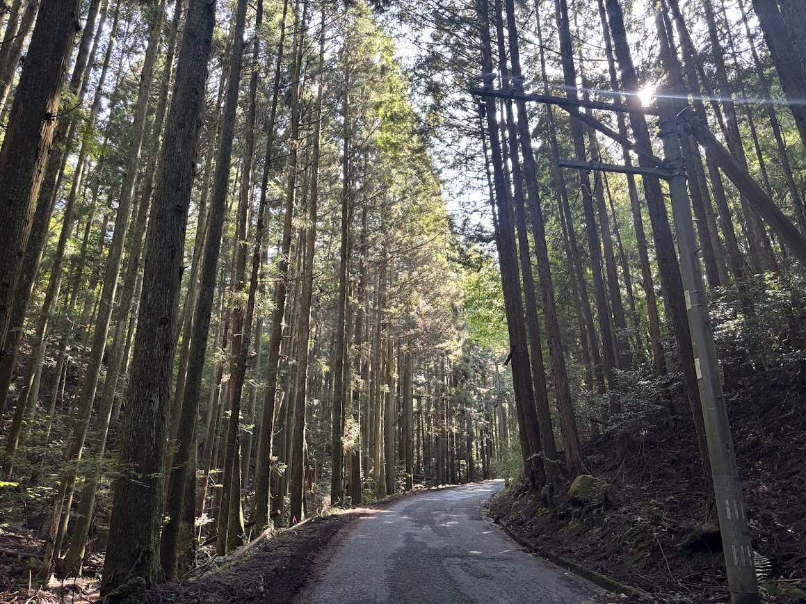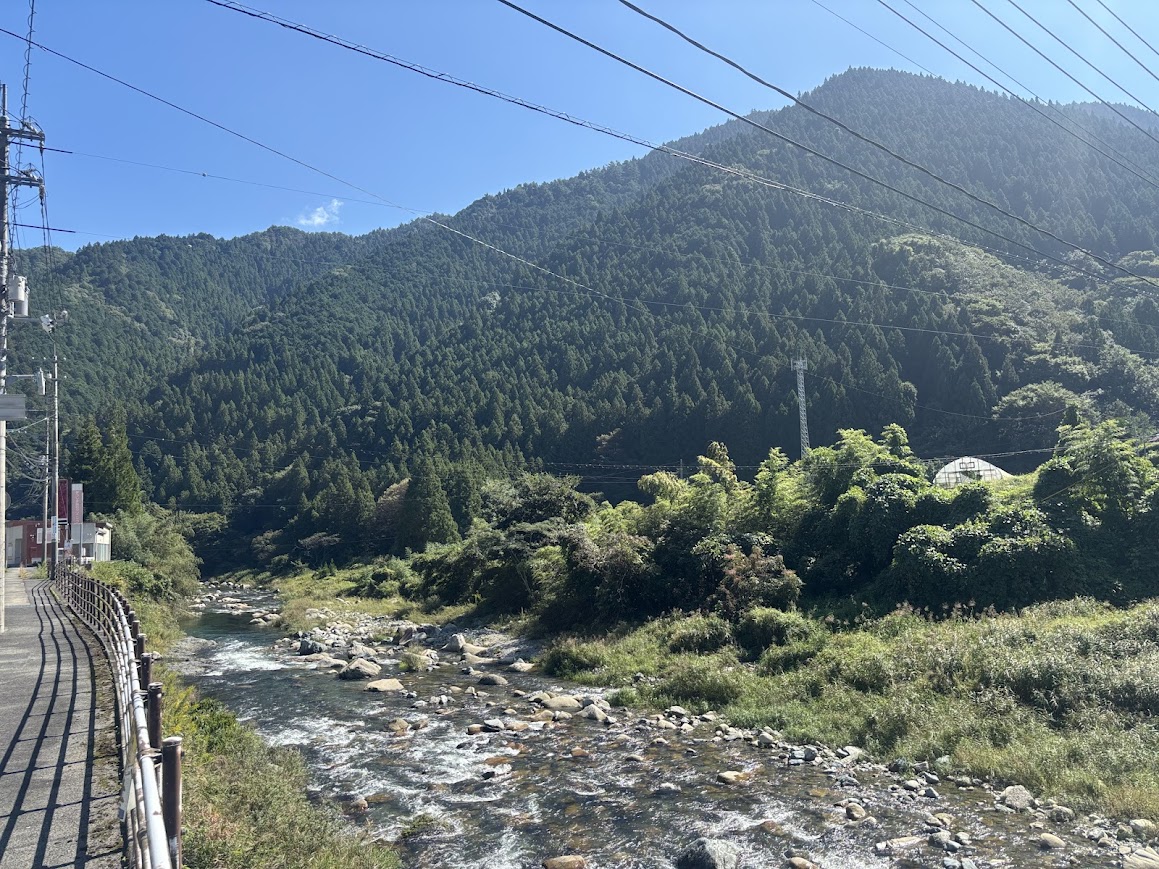 湯来・湯の山温泉街道を1時間ほど漕ぎ進め水内川沿いの丁字路を右折。