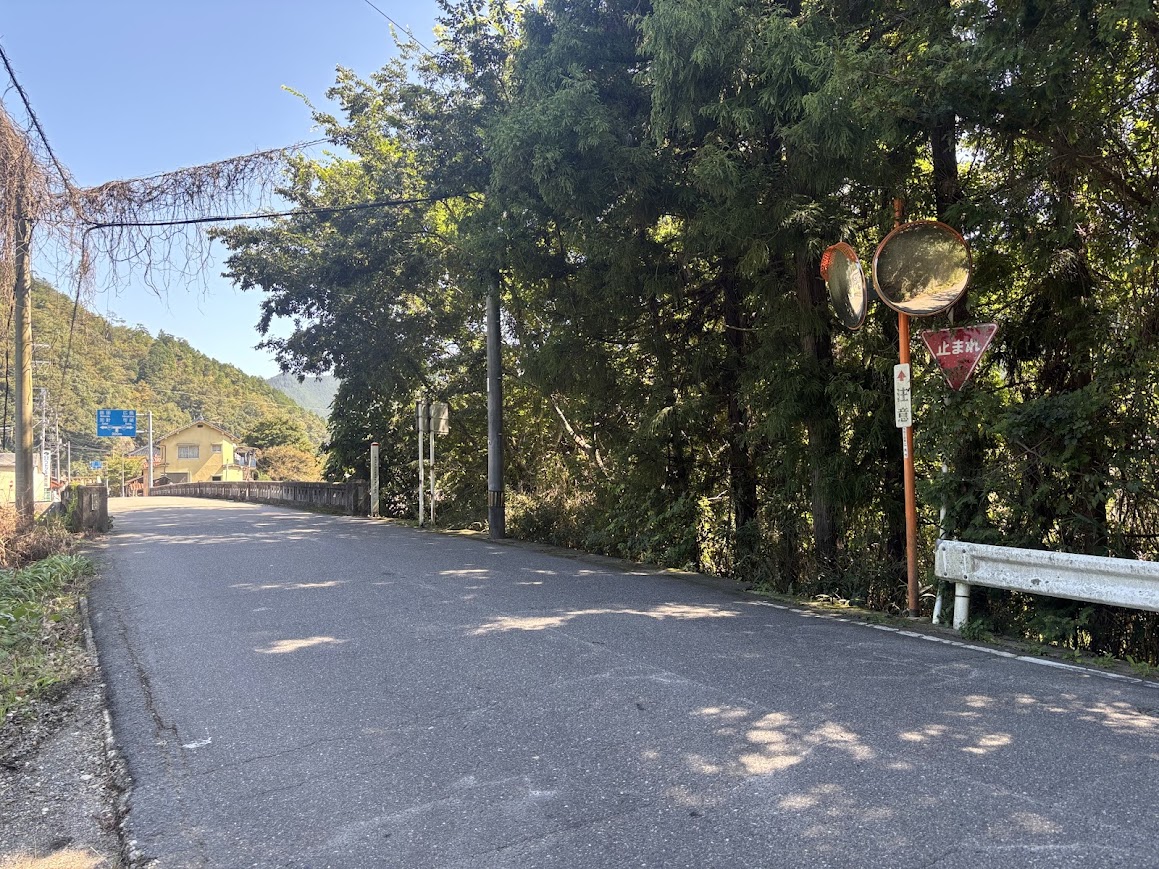 道路と廃線跡を何度か交差しつつ目的地手前の303号線にたどり着きました。
