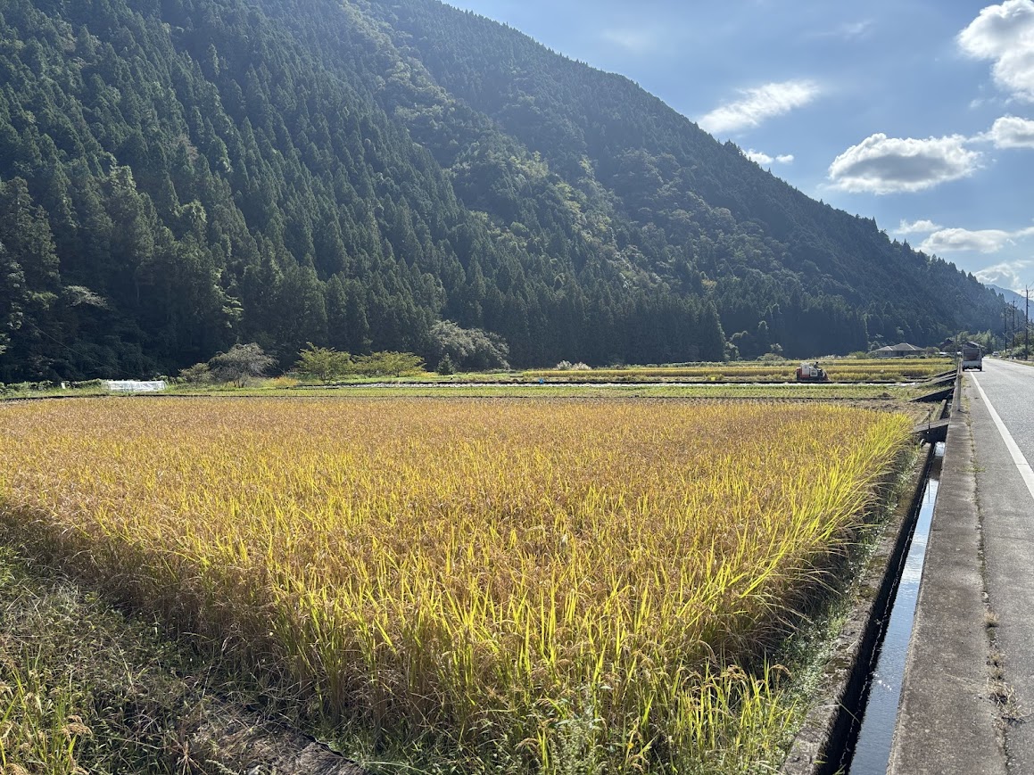帰り道の湯来エリアではちょうど稲刈りをされているところも。