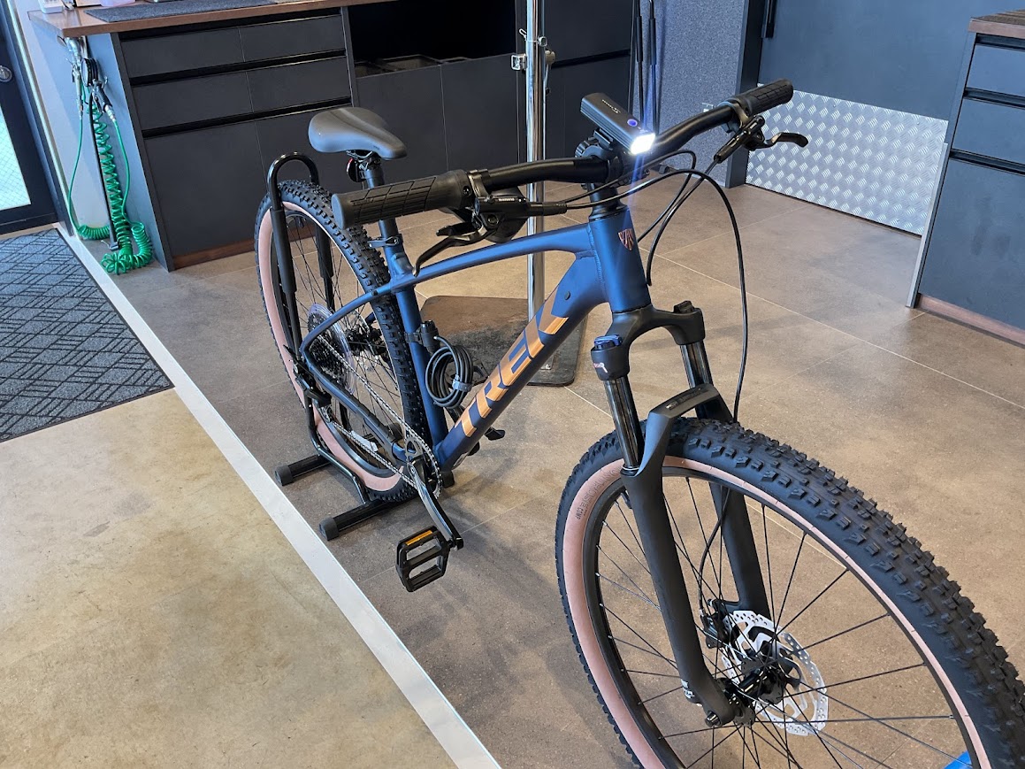 新モデル発表以来、間違いなく一番ご納車させていただいているマウンテンバイク、MARLIN 5 のMulsanne Blueをご納車させていただきました!今回の、スタイルは街乗りです。ライト、鍵、スタンドを付けさせていただきました。幅の広いタイヤとサスペンションにより、快適かつ安定して走行することが可能です!見た目も相まって、山で遊ぶだけでなく、街乗り用と人気の高いバイクです!
