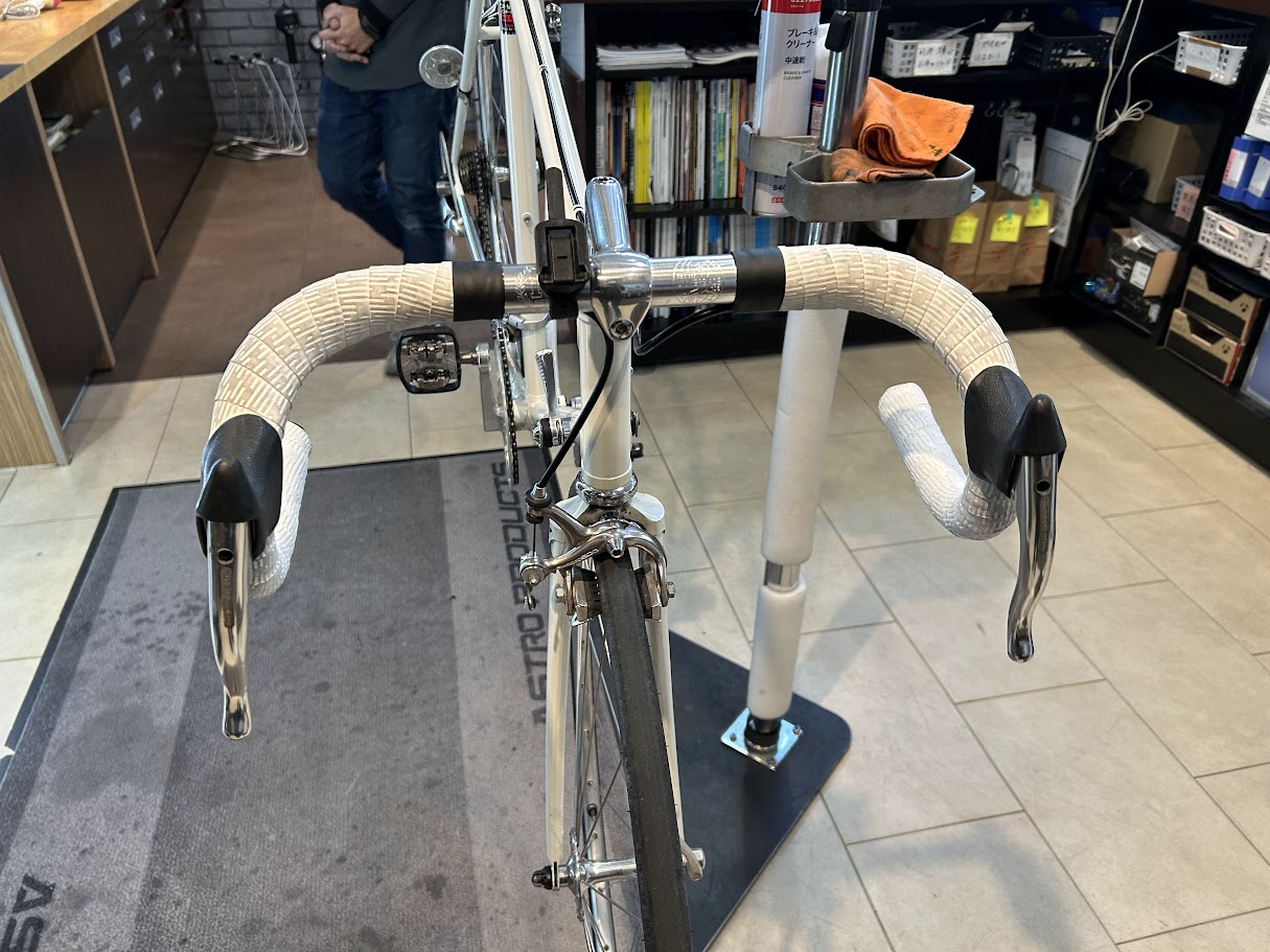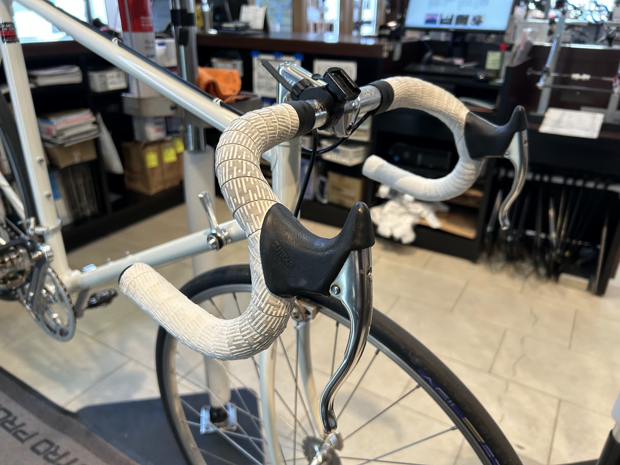 こちらは実際の私のクロモリロード。クラシックなホワイトのボディにピッタリです!
