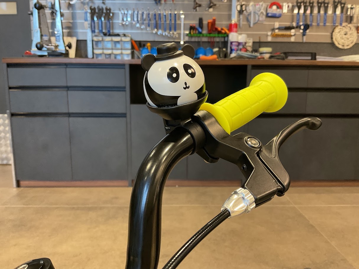 お陰様で大好評のキッズバイクセール。TREKの本格キッズバイクをお手軽に体験するチャンスですが、今回は可愛らしいベルを追加購入頂きました!お気に入りのアイテム追加で、お子様のテンションも最高潮!